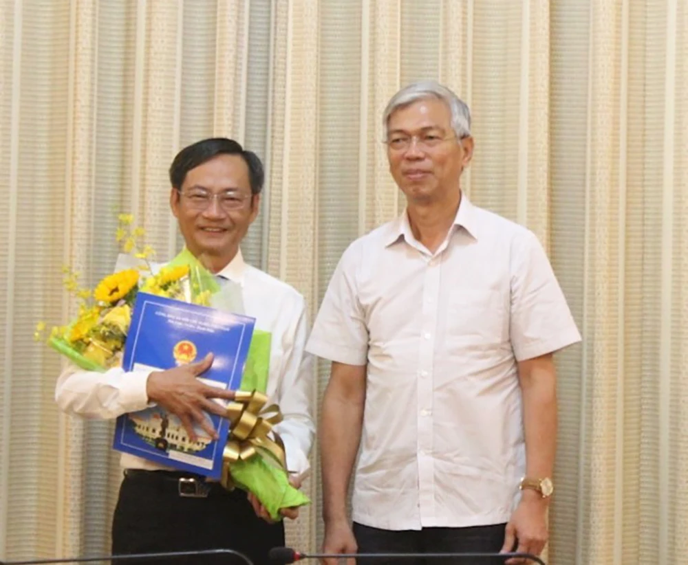 Phó Chủ tịch UBND TP.HCM Võ Văn Hoan trao quyết định bổ nhiệm cho ông Võ Trung Trực. Ảnh: Web Thành ủy TP.HCM