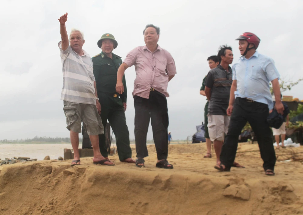 Chủ tịch UBND tỉnh Phú Yên Phạm Đình Cự (thứ ba từ phải sang) chỉ đạo việc khắc phục. Ảnh: TẤN LỘC