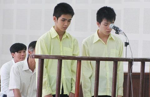 Hai bị cáo Bùi Tá Thích và Lê Văn Đô trước vành móng ngựa. Ảnh: DH