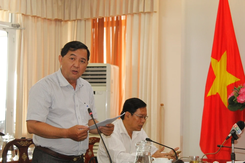 Ông Nguyễn Chí Kiên, Phó Giám đốc Sở TN&MT TP Cần Thơ phát biểu tại hội nghị ngày 7-8. Ảnh: NHẪN NAM