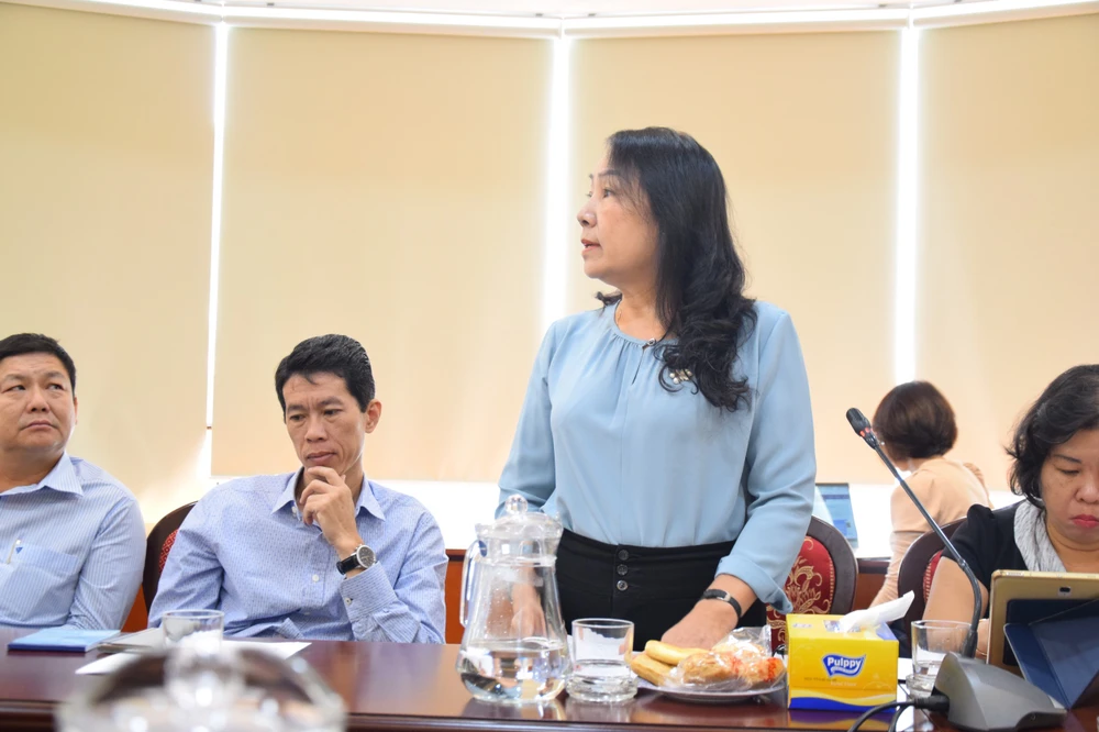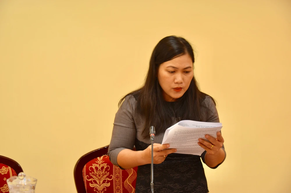Bà Huỳnh Thu Thảo, Chánh văn phòng Sở Tư pháp TP.HCM, trình bày tại hội nghị. Ảnh: YC