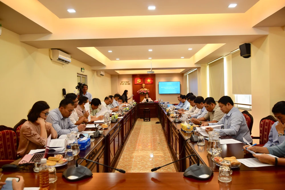 Hôm nay (24-7), Sở Tư pháp TP.HCM tổ chức hội nghị giao ban với các đơn vị trực thuộc và họp báo định kỳ 6 tháng đầu năm 2020. Bà Phan Thị Bình Thuận, Phó Giám đốc Sở Tư pháp TP.HCM, chủ trì hội nghị.