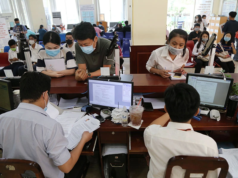 Người dân làm thủ tục tại Sở Tư Pháp TP.HCM chiều 26-8. Ảnh: HOÀNG GIANG
