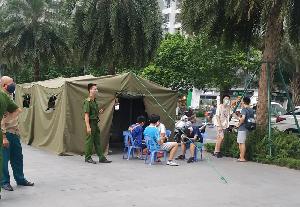 Lực lượng phòng chống COVID-19 (phường Vĩnh Tuy, quận Hai Bà Trưng, Hà Nội) xử phạt một số trường hợp đi tập thể dục, thể thao trong Khu đô thị Times City