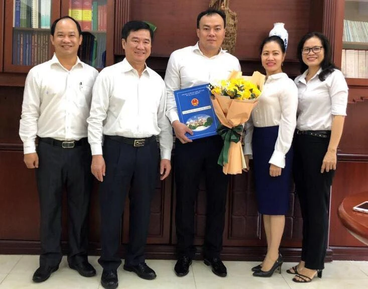 Lãnh đạo Sở Tư pháp TP.HCM chúc mừng chánh Thanh tra sở Phan Việt Trung. Ảnh: NQ