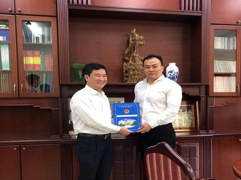 Ông Huỳnh Văn Hạnh (trái) trao quyết định bổ nhiệm chánh Thanh tra Sở Tư pháp TP.HCM cho ông Phan Việt Trung. Ảnh: NQ