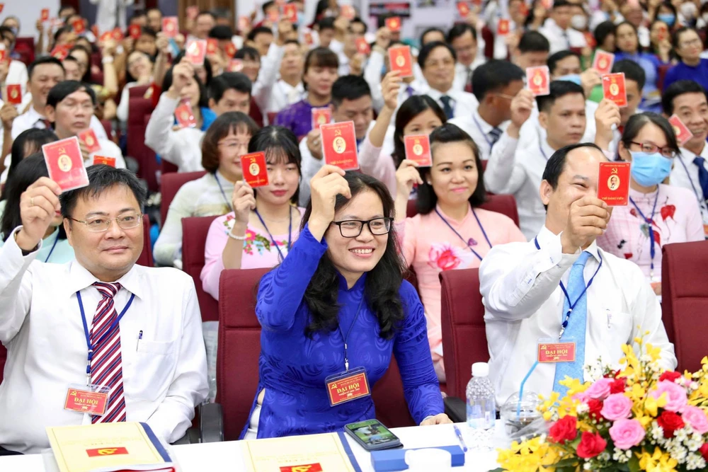 Đại biểu biểu quyết tại đại hội. Ảnh: HOÀNG GIANG