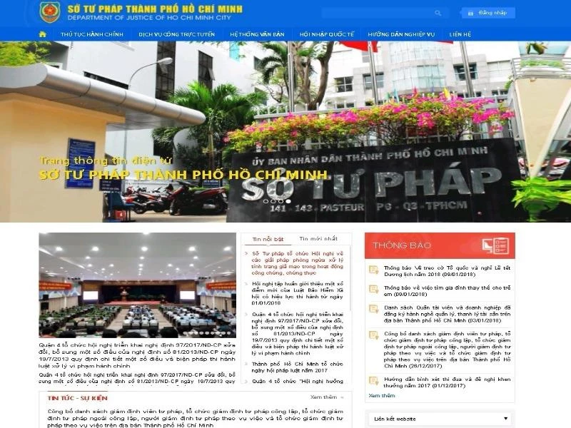 Chiều 9-1, Sở Tư pháp TP.HCM ra mắt Website giao diện mới (Website: www.sotuphap.hochiminhcity.gov.vn) nhằm phục vụ nhu cầu của người dân, tổ chức về tra cứu thông tin, dịch vụ công trực tuyến, thủ tục hành chính, tra cứu cơ sở dữ liệu, hướng dẫn nghiệp vụ, tin tức sự kiện...