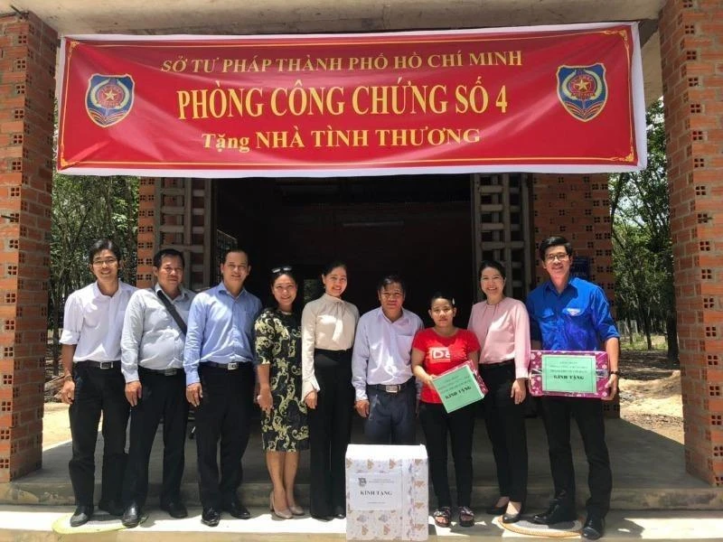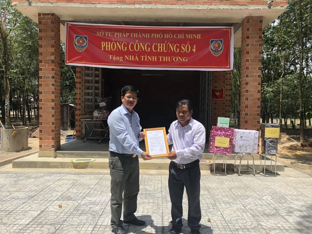 Căn nhà này được xây dựng bằng nguồn kinh phí đóng góp của cán bộ, công nhân viên Phòng công chứng số 4 (TP.HCM) với giá trị 60 triệu đồng.