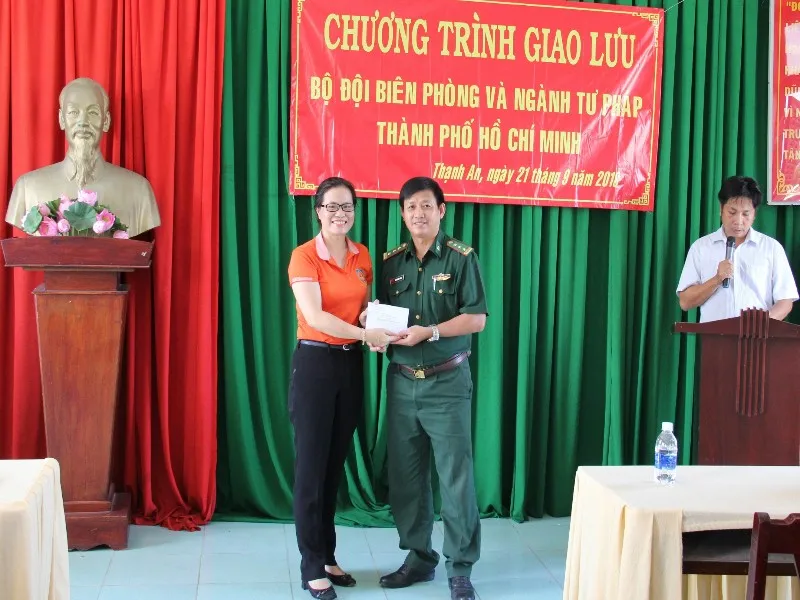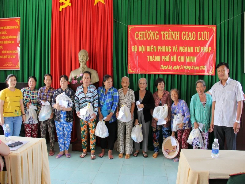 Đại diện Đồn biên phòng Thạnh An bày tỏ sự xúc động trước sự quan tâm của lãnh đạo, cán bộ, công nhân viên Sở Tư pháp TP.HCM. Đơn vị cũng mong rằng ngày càng có nhiều hoạt động giao lưu, hỗ trợ để thắt chặt tình cảm hậu phương quân đội và Sở Tư pháp.