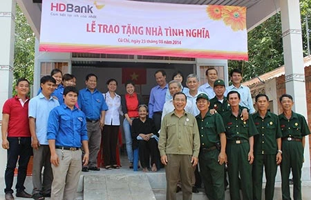 Bà Phưa trong buổi nhận nhà tình nghĩa. Ảnh: HOÀNG LAN
