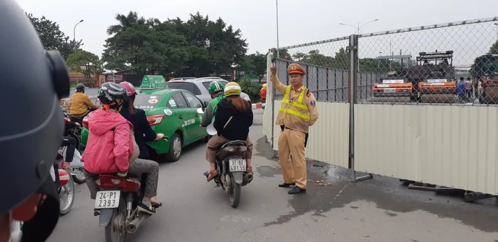 Lực lượng CSGT phân luồng giao thông từ xa trên các tuyến đường xung quanh SVĐ Mỹ Đình.