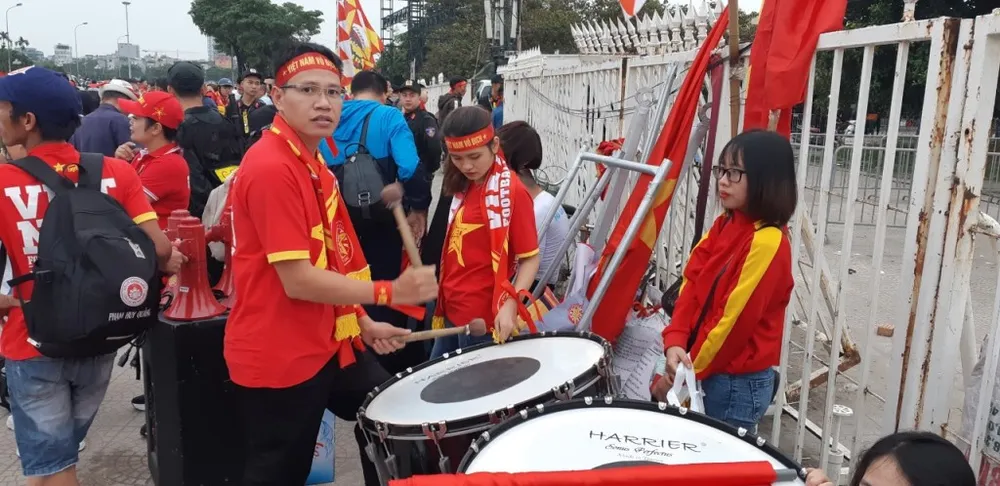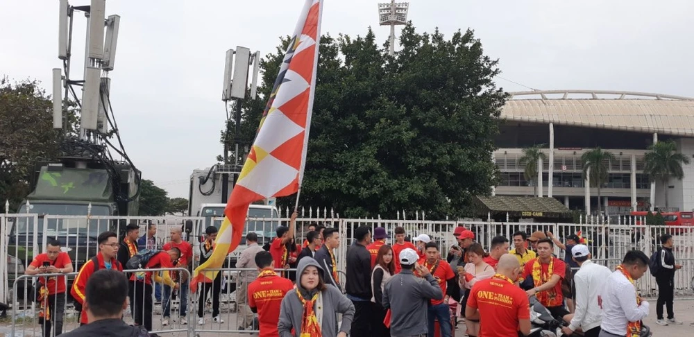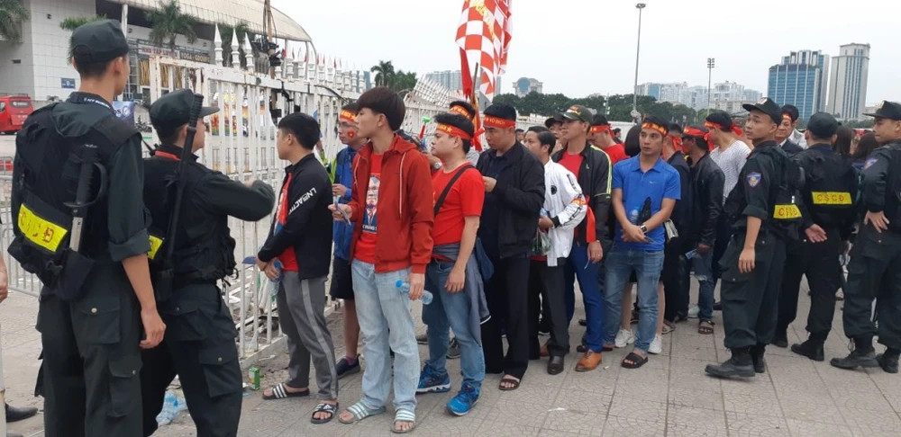 Ngay từ lúc 17 giờ, hàng trăm CĐV đã xếp hàng để vào SVĐ Mỹ Đình, theo dõi trận đấu giữa tuyển Việt Nam - UAE.