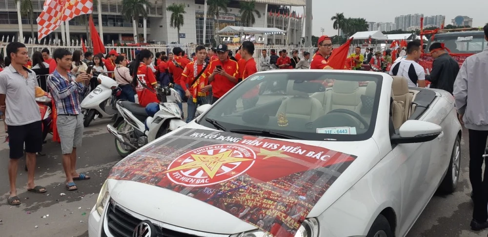 Chiếc xe nổi bật khu vực trước SVĐ Mỹ Đình.