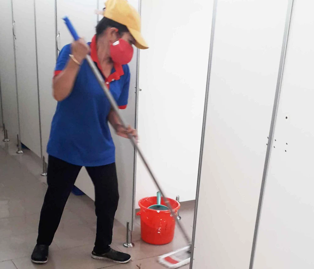 Nhà vệ sinh BV Mắt TP.HCM luôn được chùi rửa sạch sẽ phục vụ thân nhân người bệnh. Ảnh: TRẦN NGỌC