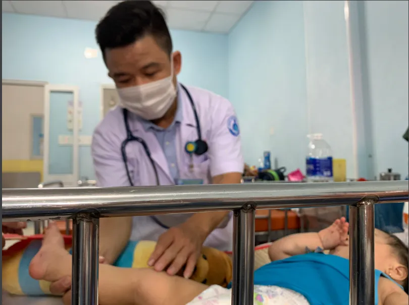 Trẻ bị tay chân miệng đang được điều trị ở BV Nhi đồng 1 TP.HCM. Ảnh: HOÀNG LAN