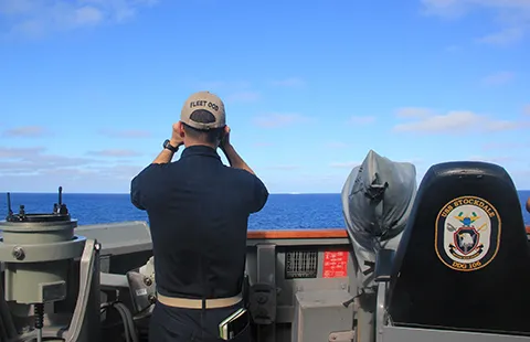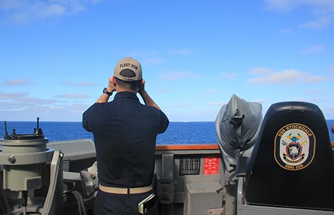Sĩ quan trên tàu khu trục USS Stockdale thuộc nhóm tác chiến tàu sân bay USS John C. Stennis trên biển Đông ngày 5-3. Ảnh: HẢI QUÂN MỸ