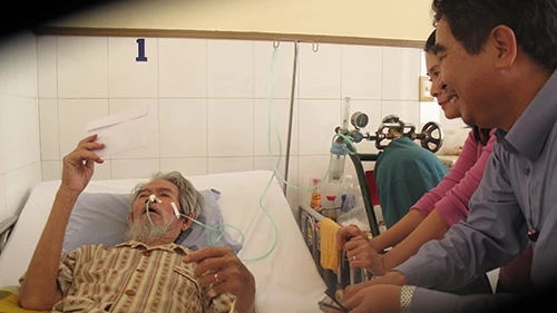 Ông vua vọng cổ - NSND – soạn giả Viễn Châu đang nằm viện với cái đầu phải khâu vài mũi, máu còn ướt tóc và hai con mắt sưng bầm. Ông bị té từ trên bộ phản xuống đất khi đang ngủ mê, sau đó lại té thêm một lần nữa khi đi vệ sinh. Trừ việc đau nhức khắp mình ông vẫn tỉnh táo, minh mẫn tiếp chuyện mọi người.