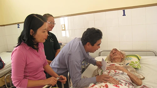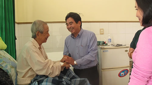 Đoàn đại diện Thành ủy TP.HCM thăm hỏi soạn giả Viễn Châu.