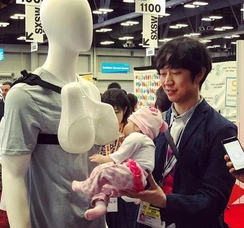 Công ty Dentsu tạo ra loại thiết bị có hình dạng như một cặp vú phụ nữ, có thể đeo được, với một bầu chứa sữa và núm vú bằng silicon ở bầu còn lại.