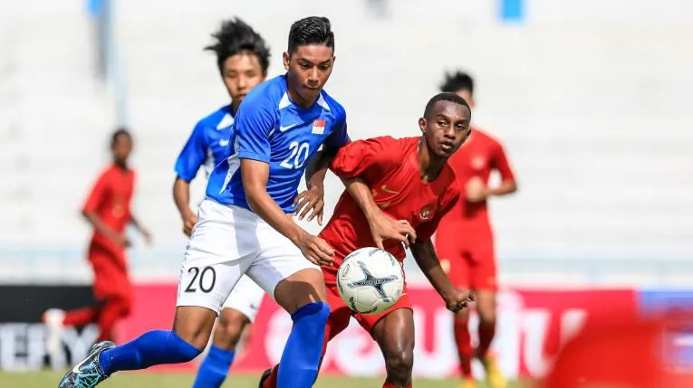 Indonesia (đỏ) tiếp tục đánh bại Singapore 3-0.