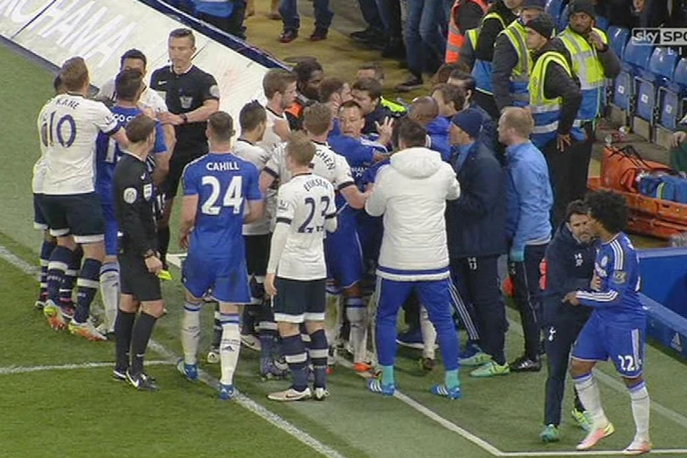 Đó là lượt trận thứ 36 tại Stamford Bridge, các cầu thủ Tottenham đã chủ động… nóng đầu khi muốn chiến thắng để tiếp tục chạy đua ngôi vô địch Anh cùng Leicester City. Khi đã dẫn 2-0 thì các cầu thủ Chelsea gỡ hòa 2-2, điều này có nghĩa ngôi vô địch thuộc về Leicester sớm hai vòng đấu và đặt dấu chấm hết cho Toteenham… Thế là trận đấu cực nóng, hai đội bị thẻ quá nhiều, nhất là Tottenham đến 10 thẻ.