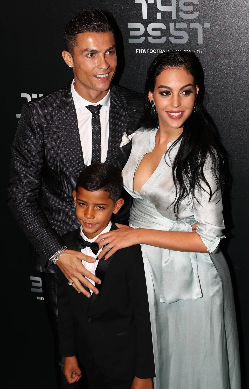 Ronaldo cùng với bạn gái Georgina Rodriguez 23 tuổi và đứa con trai 7 tuổi của anh.