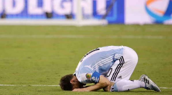 Không thể diễn tả nỗi thất vọng sau khi đá hỏng quả phạt đền, cầu thủ 29 tuổi đã bật khóc nức nở. Sau khi nhận chiếc HCB, tại buổi họp báo, cầu thủ đang chơi cho Barcelona, Lionel Messi đã bất ngờ tuyên bố chia tay đội tuyển.