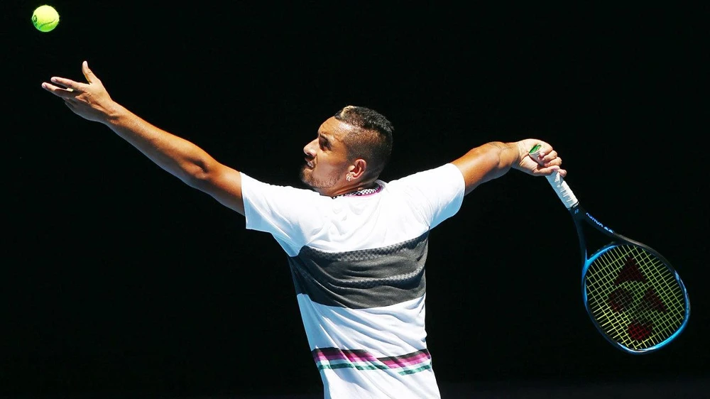 Nick Kyrgios, tay vợt có biệt danh “ngựa chứng” Úc đánh dấu chiến thắng bằng cách nằm xuống sân, trước khi anh đặt ngón tay ra sau tai đồng thời yêu cầu khán giả cổ vũ thật to với giọng nói khản đục.