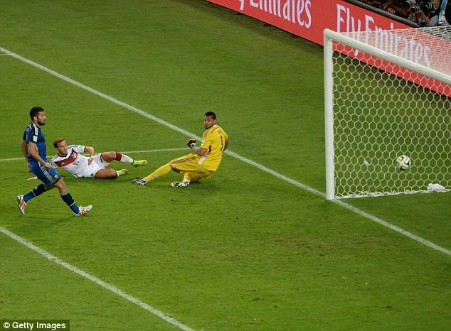 Gotze ghi bàn duy nhất trong hiệp phụ giúp Đức nâng cúp vàng World Cup 2014.