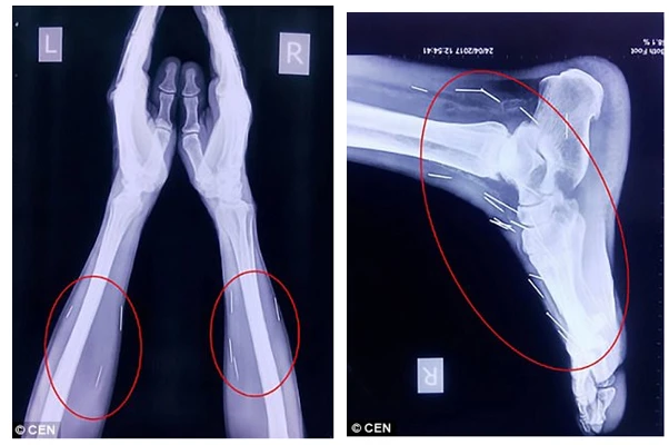 Daily Mail đưa tin, ông Badrilal Meena (56 tuổi) đến từ TP Kota, bang Rajasthan, miền Bắc Ấn Độ được đưa vào bệnh viện để phẫu thuật ngón chân cái thì bác sĩ phát hiện trong chân ông có nhiều cây kim.