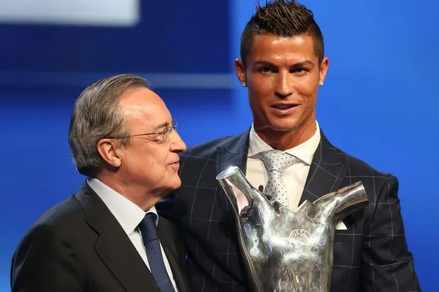Chủ tịch Real Madrid Florentino Perez và Ronaldo.