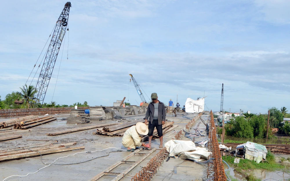 Cầu Mạc Đĩnh Chi là công trình vượt sông cuối cùng của dự án đê bao ngăn mặn và đường phục vụ quốc phòng an ninh, ứng cứu tàu thuyền vùng biển huyện Trần Đề. Ảnh: DIỄM HẰNG