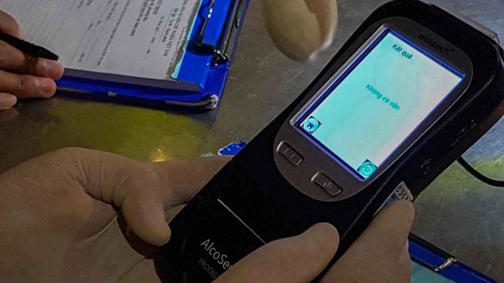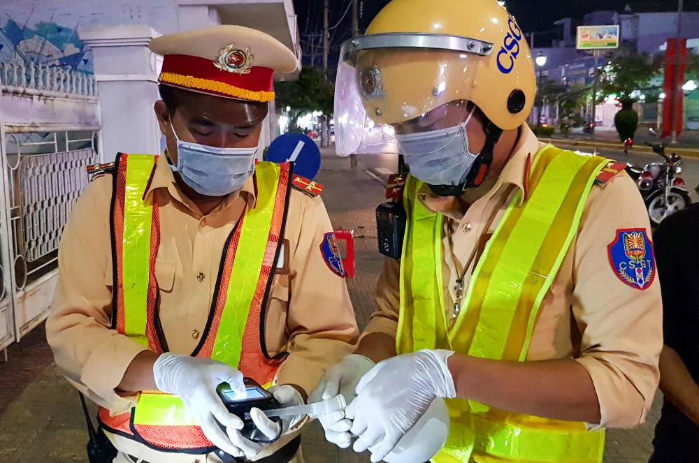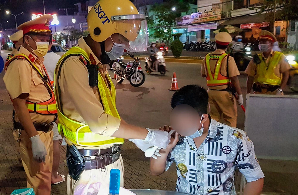 Ghi nhận thực tế, sau khi kiểm tra giấy tờ, lực lượng CSGT giải thích cho người bị kiểm tra về dịch bệnh. “Sau khi thổi hơi vào bong bóng, chúng tôi sẽ truyền gián tiếp qua máy đo nồng độ cồn. Kết quả thổi trực tiếp và gián tiếp như thế này đều như nhau" – một chiến sĩ CSGT thông tin.