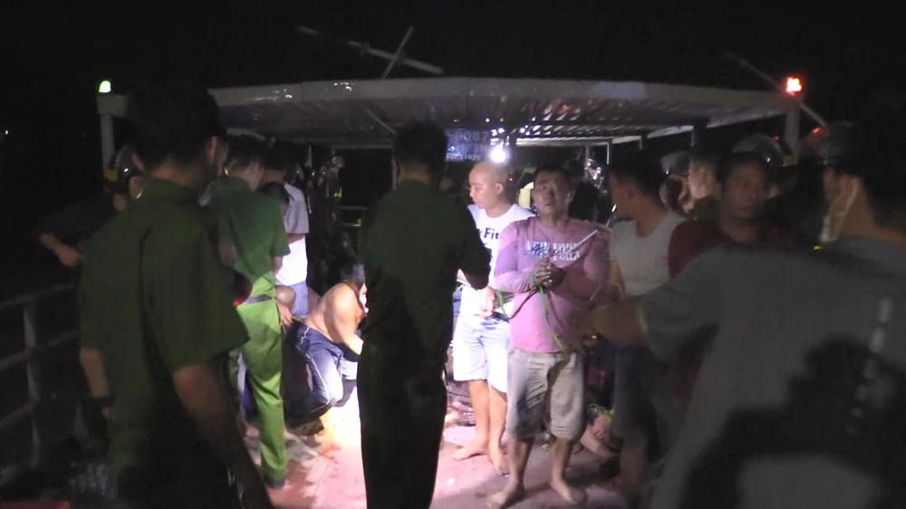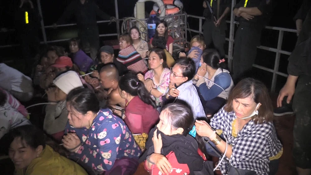 Các con bạc bị bắt giữ, được đưa bằng thuyền vào bờ. Ảnh: Công an cung cấp