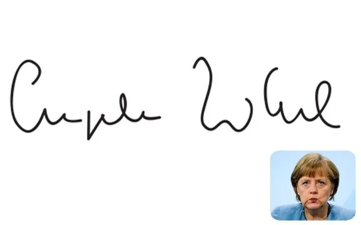 Trong khi đó, chữ ký của nữ chính trị gia Thủ tướng Đức Angela Merkel được cho là rất thú vị, bởi chữ M được bà viết giống như chữ W.