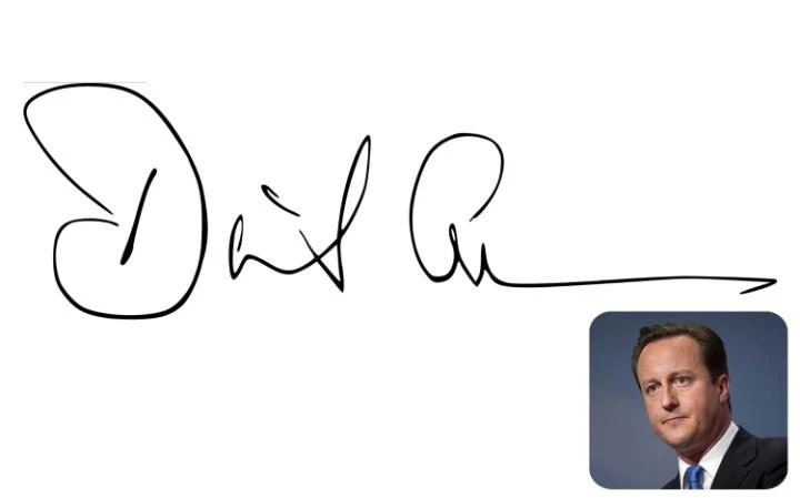 Chữ ký của Thủ tướng Anh David Cameron không cho thấy ông là một người hiếu chiến, theo chuyên gia Quigley. Bà tin rằng chữ ký cho thấy ông Cameron thực lòng quan tâm đến ý kiến mọi người, muốn làm mọi người hài lòng.
