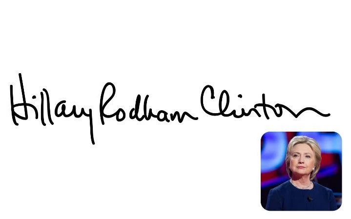 Theo chuyên gia Quigley, chữ H trong chữ ký của bà Clinton được viết rất cao, và mọi chữ khác đều có phương thẳng đứng, cho thấy sự độc lập, nhiệt huyết. Sự chú tâm bà Clinton dành cho chữ ký của mình cho thấy bà sẽ làm mọi việc theo ý mình, và rất nỗ lực khi làm việc đó.