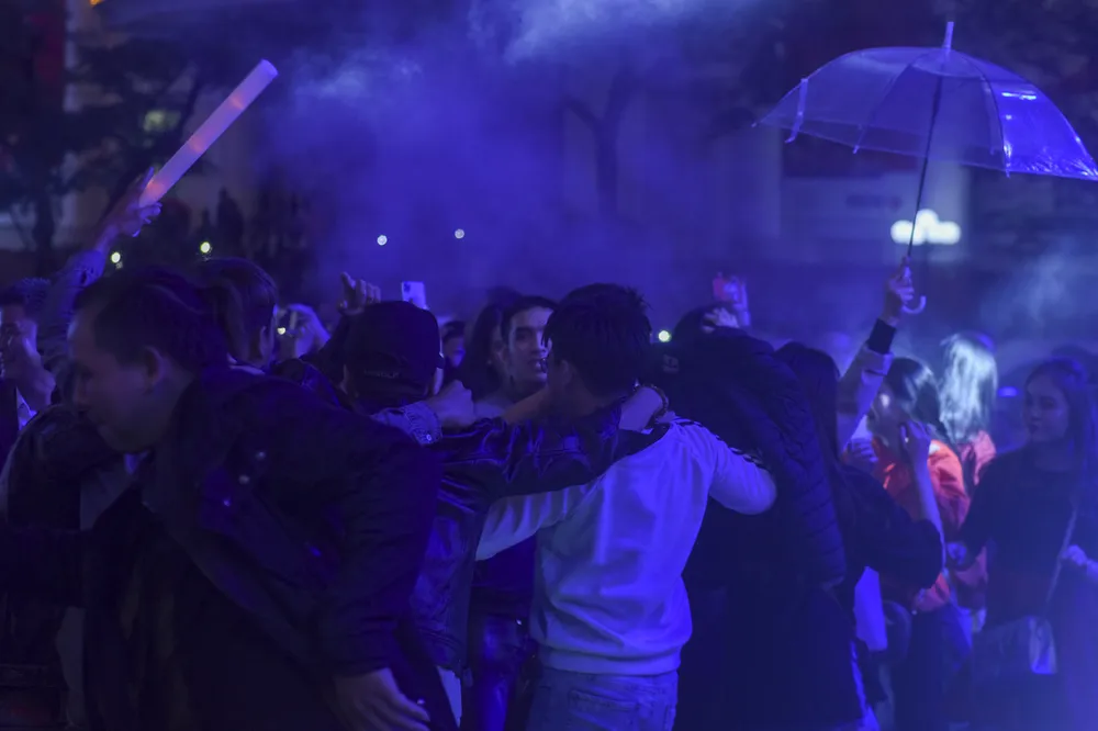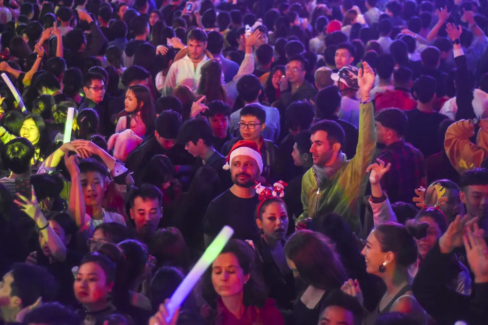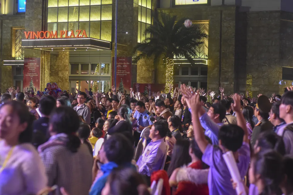 Mọi người bắt tay chúc mừng nhau trong thời khắc chuyển giao giữa năm cũ sang năm mới 2020. Ảnh: NGUYỄN DO
