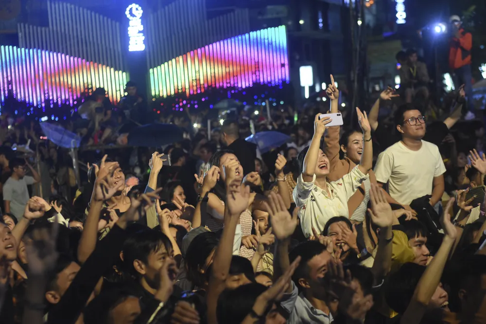 Đến gần 1h sáng, khi chương trình đã khép lại, nhiều người vẫn đang vui vẻ trao cho nhau những lời chúc tốt đẹp trong năm mới. Ảnh: NGUYỄN DO