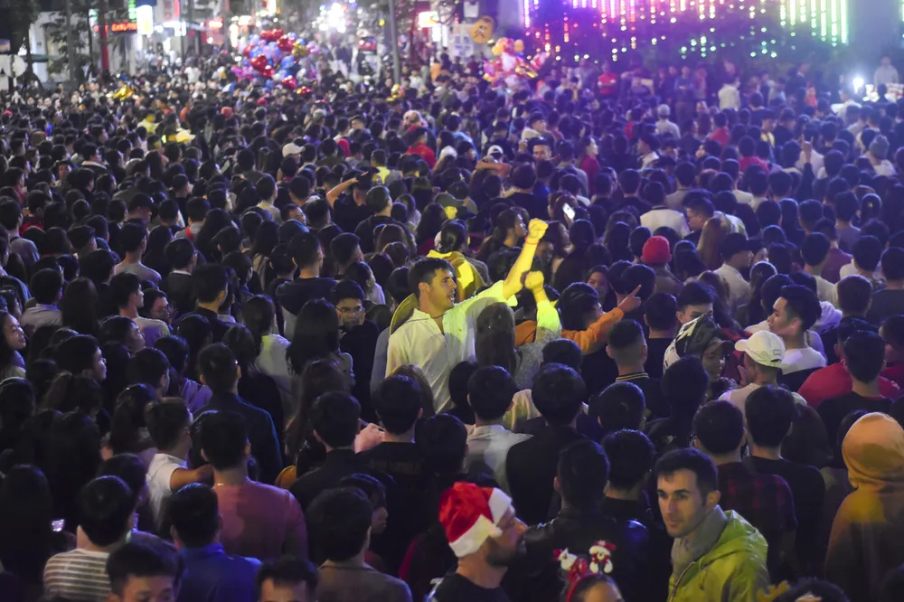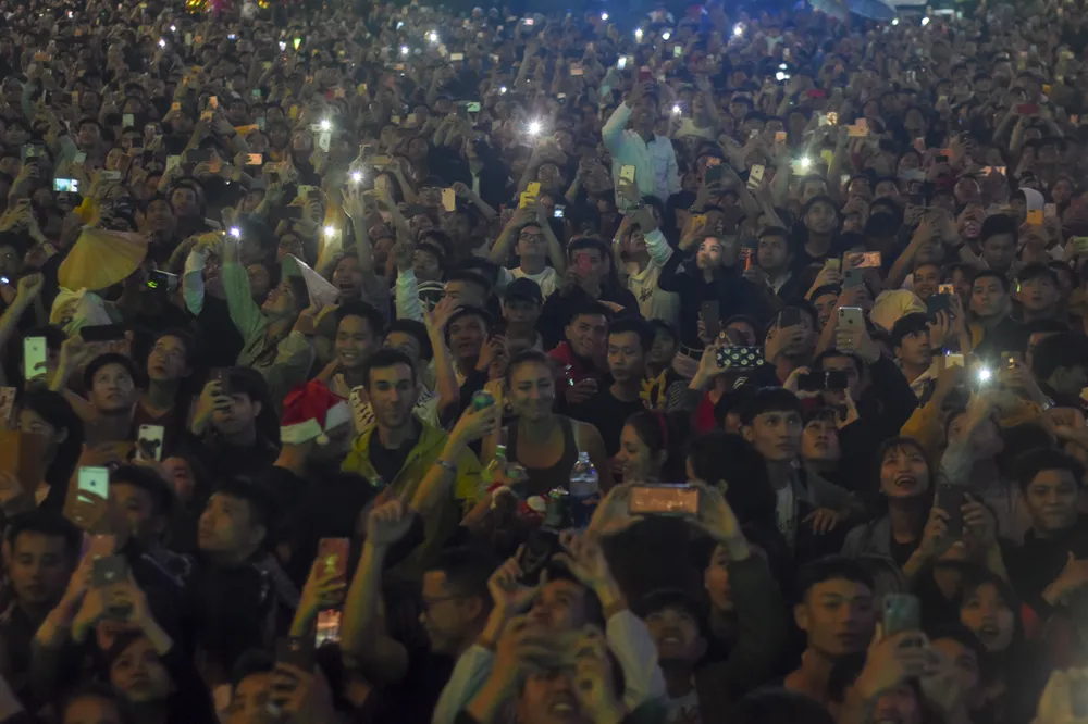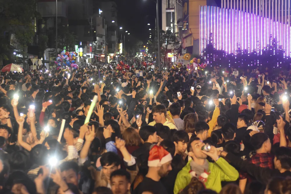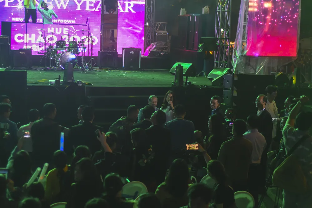 Nhiều người nước ngoài cùng chung vào không khí chào đón năm mới 2020 tại TP Huế. Ảnh: NGUYỄN DO