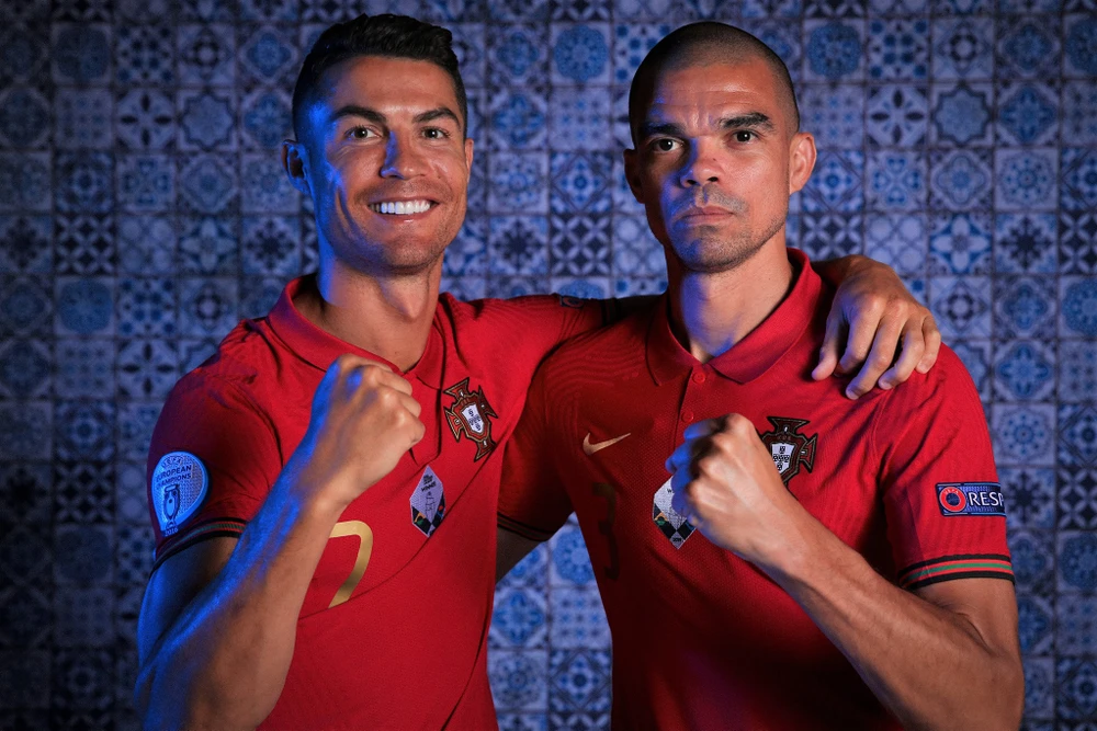 Siêu sao Ronaldo và Pepe đã sẵn sàng bảo vệ chức vô địch Euro. ẢNH: EURO