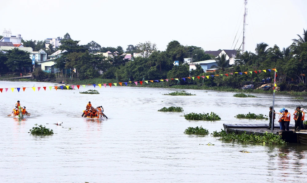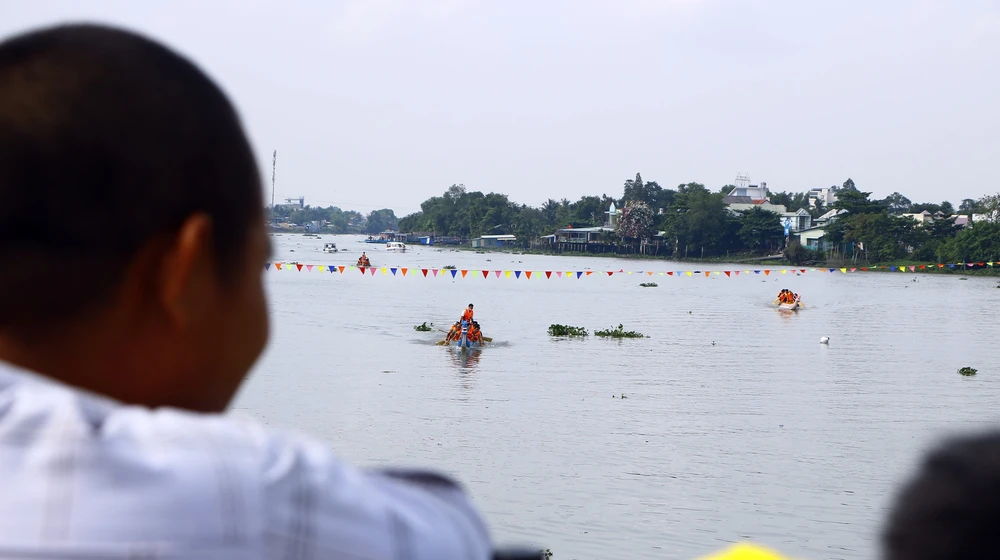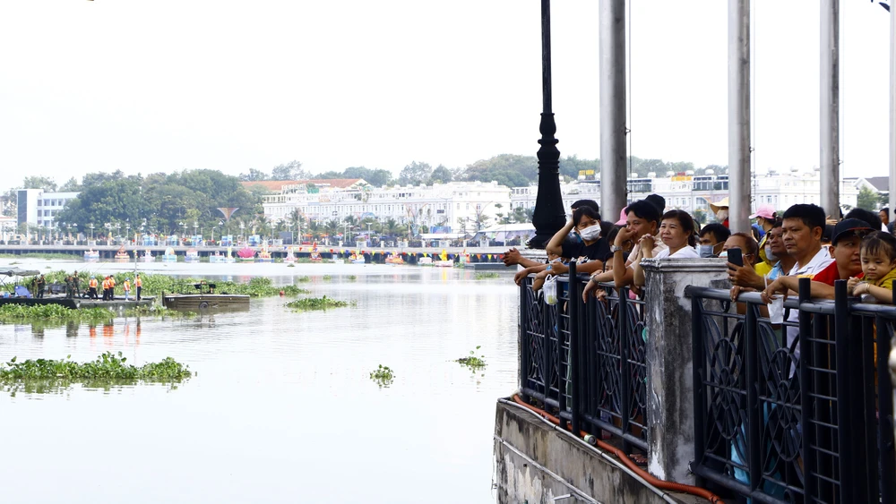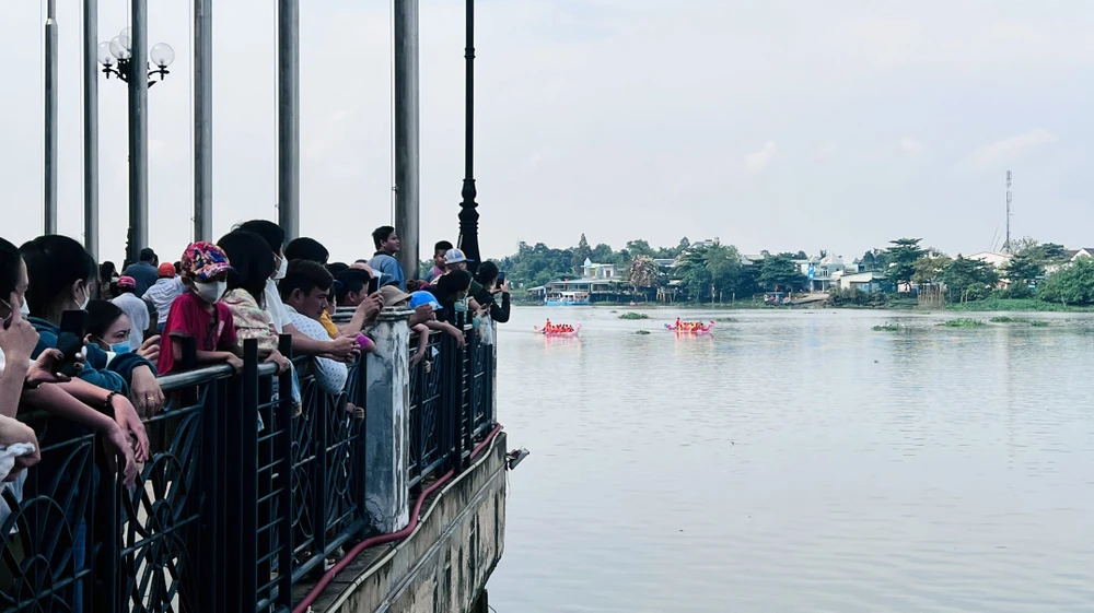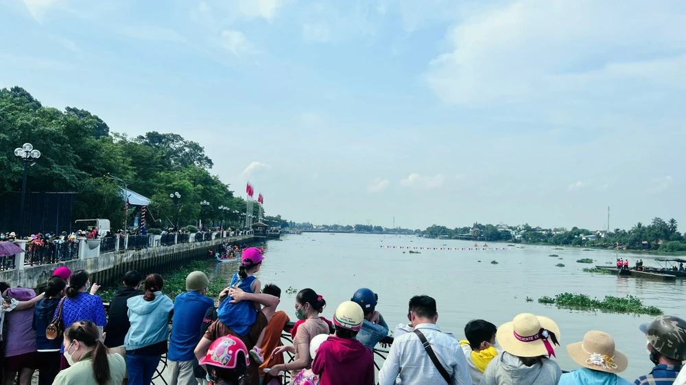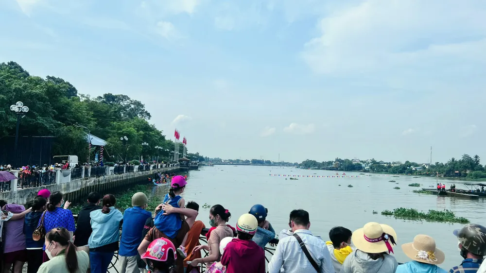 Giải đua thuyền thu hút rất đông người dân tập trung bên bờ sông để theo dõi và cổ vũ cho các đội thi.