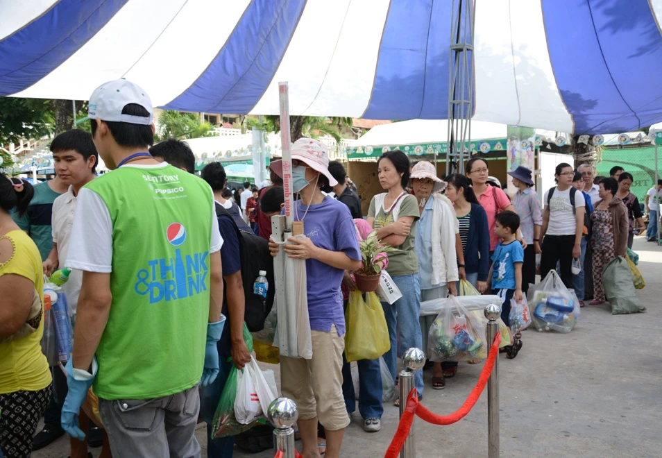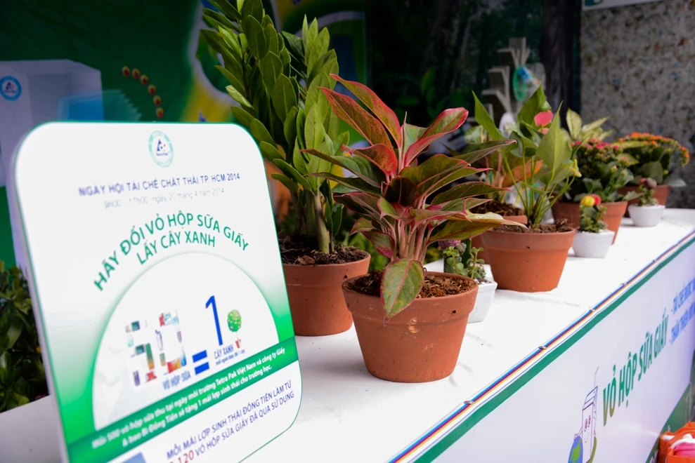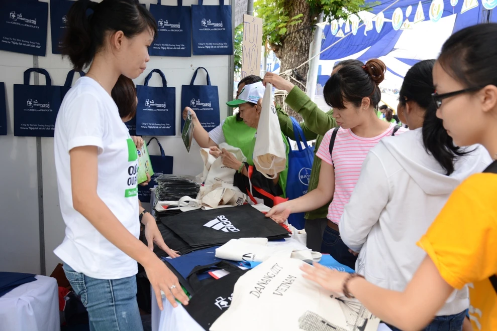 Đặc biệt là gian hàng đổi chất thải nguy hại lấy quà, đổi túi nylon, đổi vỏ hộp sữa lấy cây xanh…