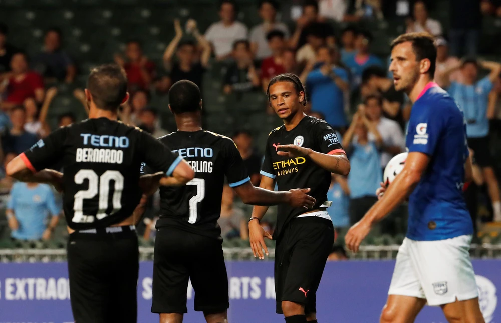 Leroy Sane lập cú đúp trận thắng 6-1 của Man City trước CLB Kitchee Hong Kong. ẢNH: REUTERS