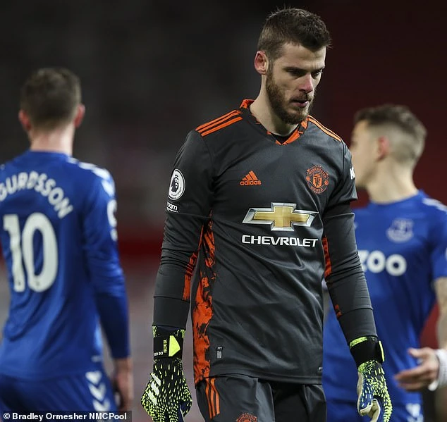 Ở trận này, De Gea đã phạm hai sai lầm. Đầu tiên là pha cản phá bóng thiếu cảm giác khiến bóng tìm đúng vị trí của Abdoulaye Doucoure và cầu thủ này dễ dàng đệm bóng vào lưới trống gỡ 1-2 cho Everton. Cuối trận, De Gea cũng mắc lỗi thiếu dứt khoát dẫn đến bàn gỡ hòa 3-3 của đội khách.