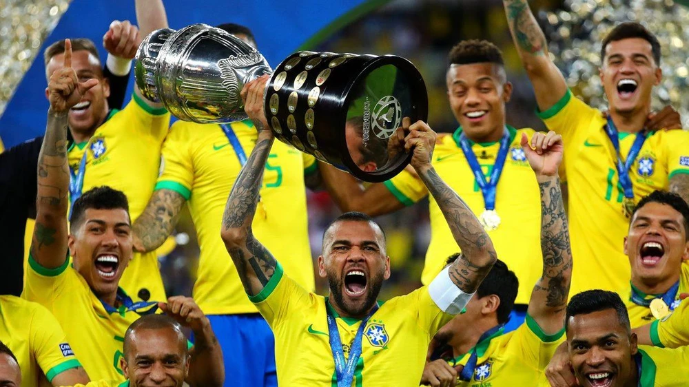 Đội trưởng tuyển Brazil Dani Alves nâng cúp vô địch Copa America 2019. ẢNH: GETTY IMAGES