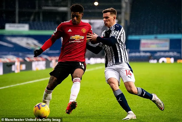 Rashford bị các cầu thủ West Brom chăm sóc rất kỹ. ẢNH: GETTY