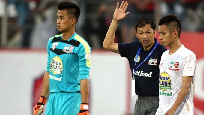 HLV Dương Minh Ninh (giữa) xin từ chức HLV trưởng HA Gia Lai. Ảnh: CTV