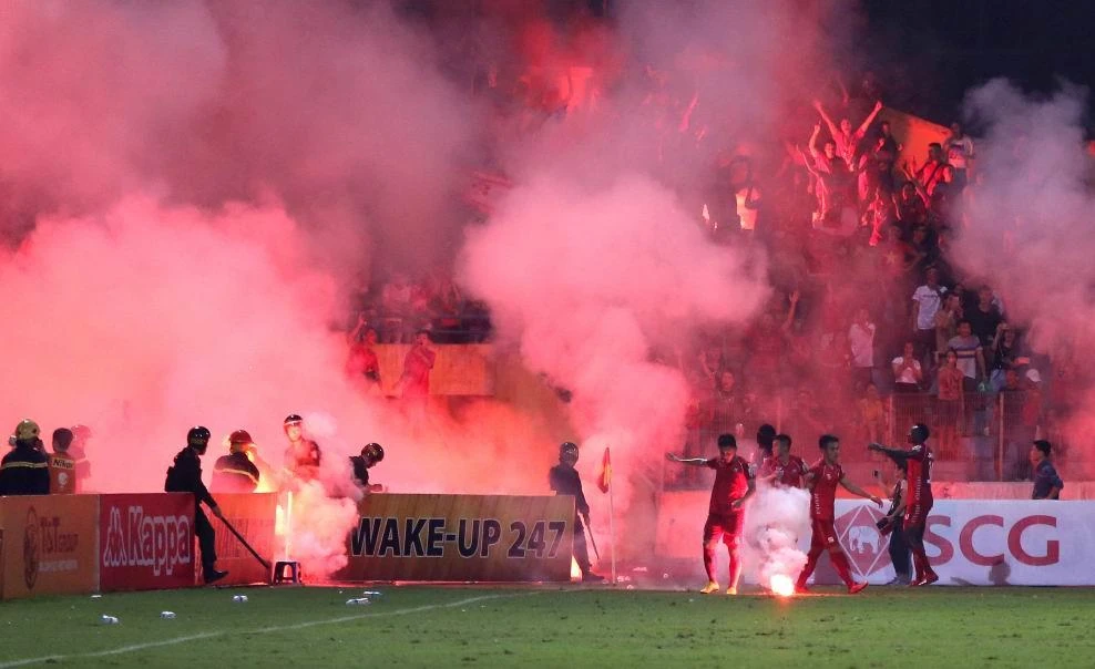 Tuy nhiên chắc chắn những nhà tổ chức không thể ngờ rằng pháo sáng lại quá kinh khủng như trận Hà Nội – Hải Phòng ngày 21-4 làm mù mịt sân và gây nguy hiểm cả về tính mạng cầu thủ, cổ động viên lẫn về mặt an ninh.